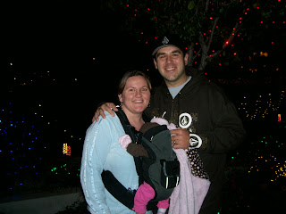 So I add posts to our blog quite often--that means one of two things: either we are so fun and active that I just hafta post EVERYTHING we do, or, I have no life and think that everything we do is exciting and worth posting. Who knows??? Any opinions on that one??? Well, last night we went to see the lights at the Mesa Temple with our friends. It was a bit chilly, but not cold enough to make it miserable--PERFECT!! I wore Haylee in the Snugli and remembered what I hated about being pregnant--carrying a bowling ball on the front of you! Not too sure why I didn't take Cam's offer to carry her...She did look very cute in her hat, hoodie, and mittens!:) Grandma, I use that blanket you gave her ALL THE TIME!!! Thank you! The group picture is our "Sunday Night Crew", thanks to Cara, for always planning that for the rest of us!